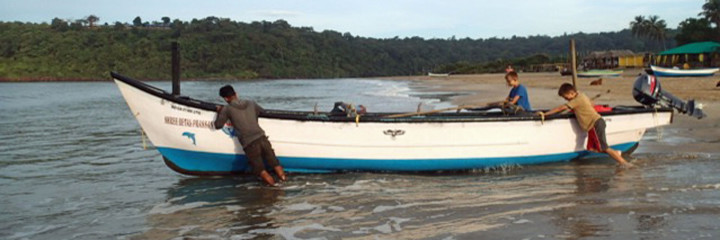This Monday we got up at 6:30 to go dolphin watching. We left our beach hut and with the help of the skipper and his mate, pushed the boat down oily chocks into the bumpy bay. The 7 metre long boat was wooden, blue and white, with a starboard outrigger and a 9.9, Read More