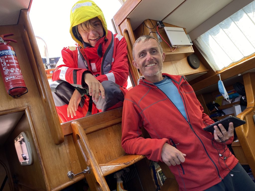 Wow! We’ve not had a night like that since we crossed the Bay of Biscay with Uncle Adam, way back in 2018. It started calmly enough, and Evan had a lovely couple of hours on his early evening watch. It all started to go a bit wrong when Sam took control. What had been high, fluffy moonlit clouds for Evan soon turned into low, thick and darkly menacing clouds for Sam. He spent the first hour of his watch manfully routing us around the squalls that sat beneath each patch of inky blackness, but by 11 pm he could see no way clear and rightly called for help.
